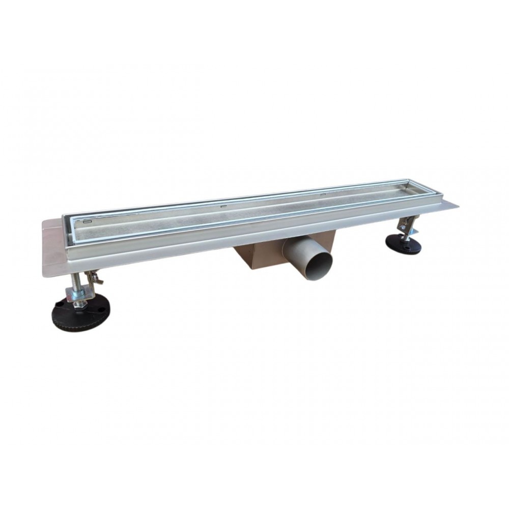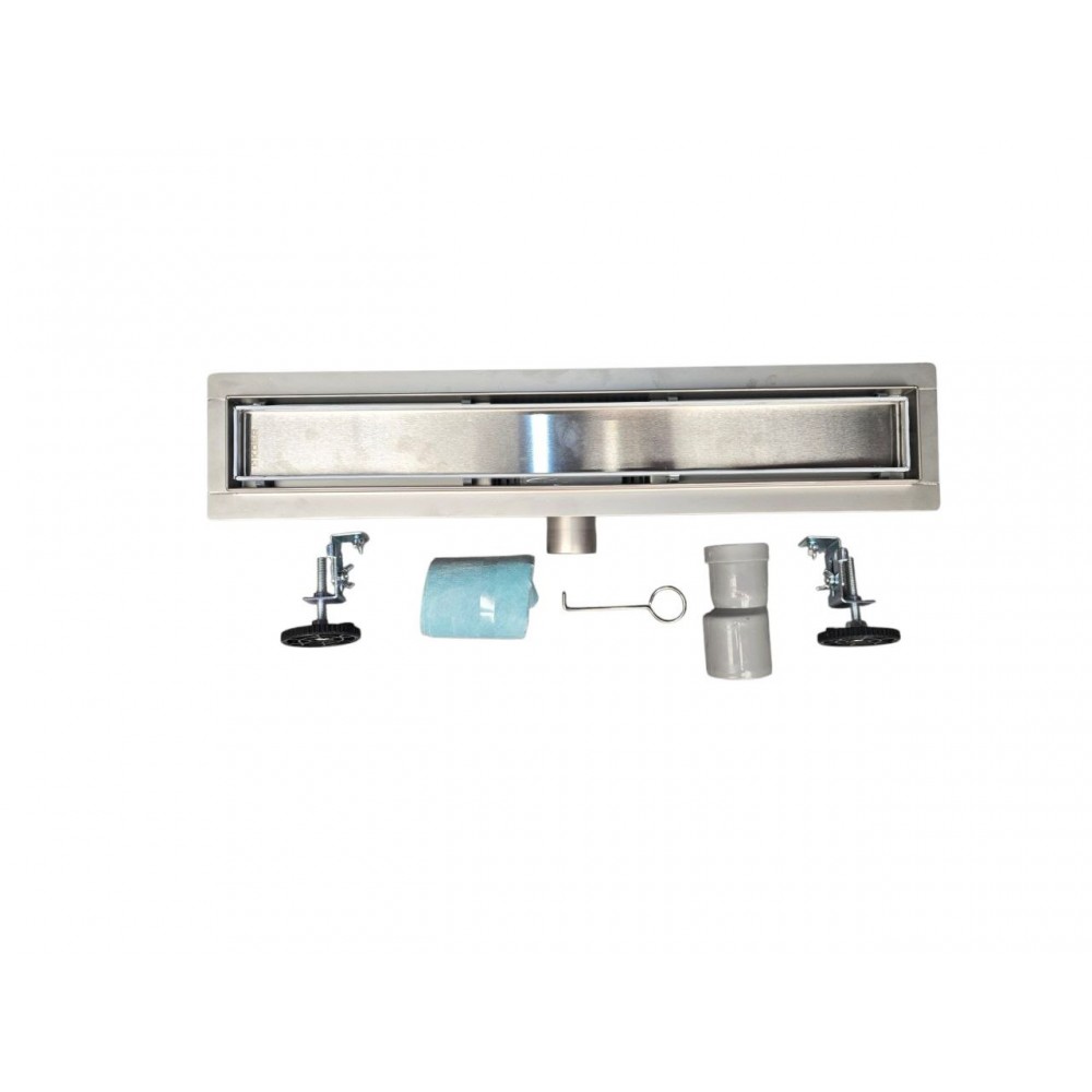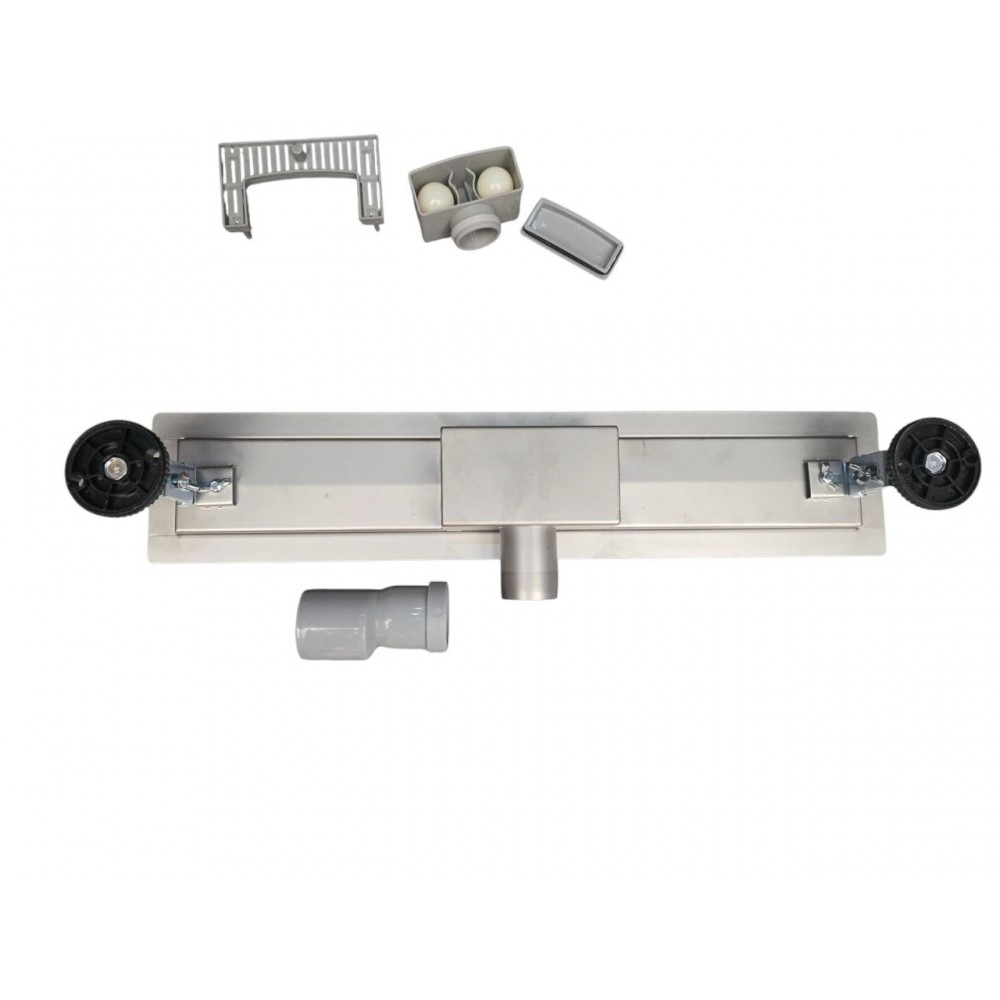 В комплекті: корпус з нержавійки, лоток під плитку, гідроізоляційна стрічка з відповідним отвором під корпус трапу, регулюючі висоту монтажні стійки.